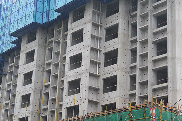 1)剪力墻現(xiàn)澆:在墻體模板頂粘貼通長海綿條,防止連接部位漏漿;