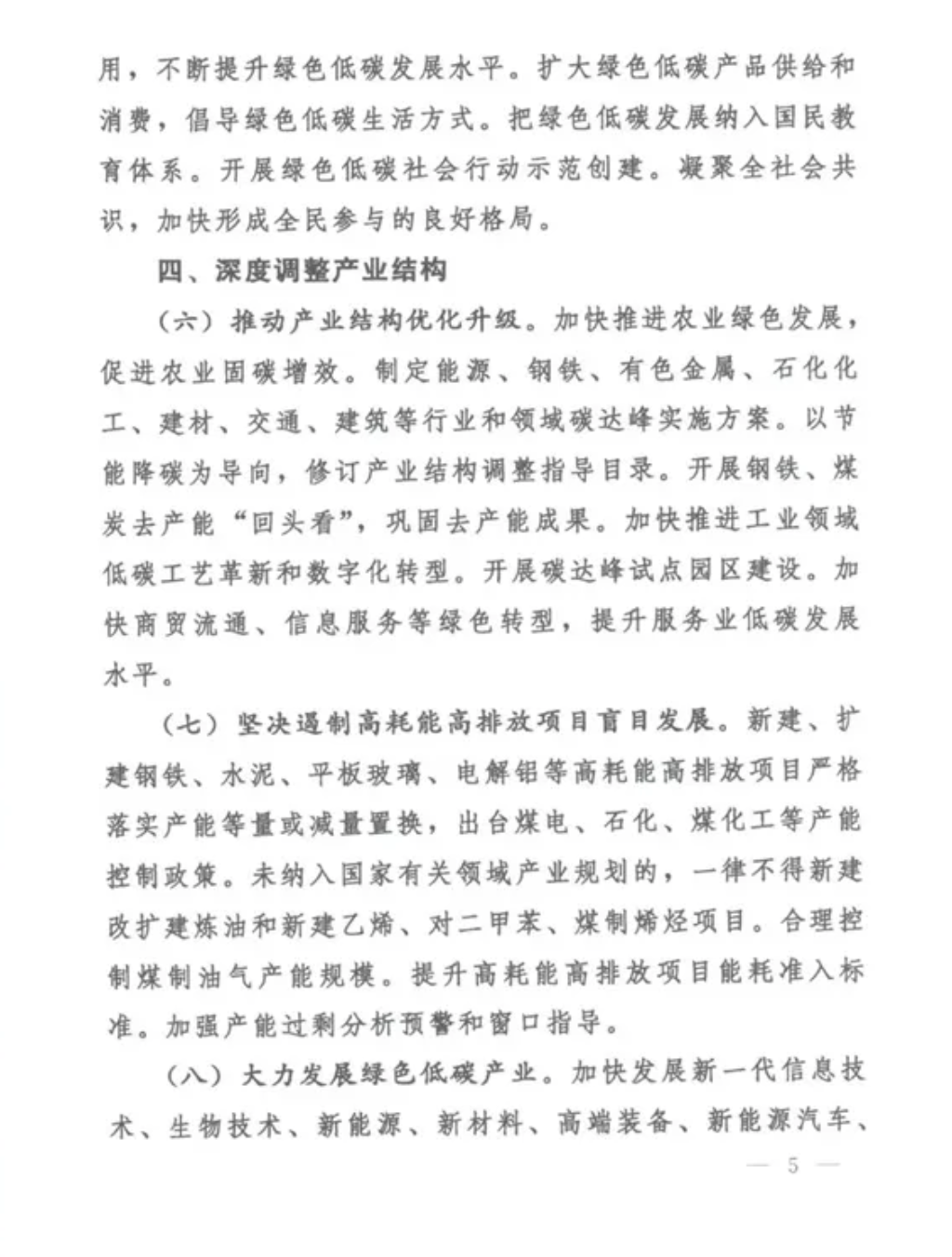 (六)推動產(chǎn)業(yè)結(jié)構(gòu)優(yōu)化升級,制定能源、鋼鐵、有色金屬、石化化工、建材、交通、建筑等行業(yè)和領(lǐng)域碳達峰實施方案。加快推進工業(yè)領(lǐng)域低碳工業(yè)革新和數(shù)字化轉(zhuǎn)型。開展碳達峰試點園區(qū)建設(shè)。