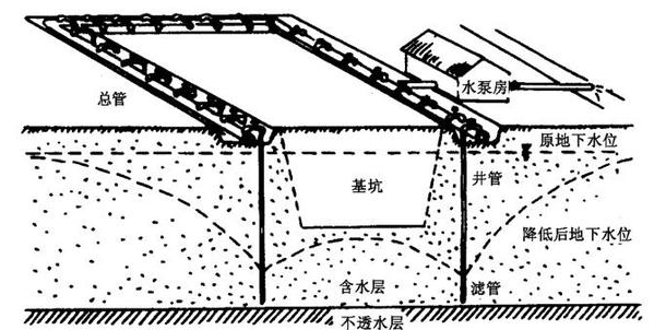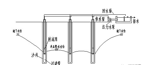 深井井點是基坑支護中應(yīng)用較多的降水方法,它的優(yōu)點是排水量大、降水深度大、降水范圍大等。